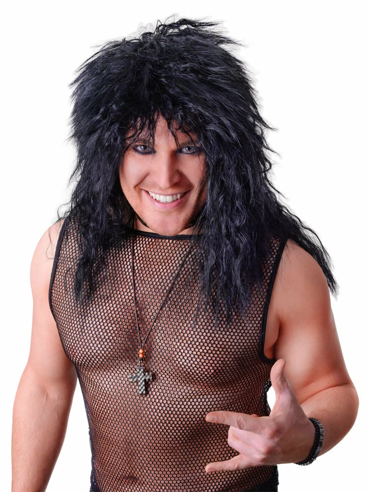 Release your Inner Rock star with this awesome 1980’s Rock Star wig in black. Perfect for finishing off a 1980s costume, or this wig is also quite popular as a Rambo wig. The wig is styled shorter at the top and longer at the sides and back, why not team with a headband and bring the 80’s back! Also available in Blonde, don’t forget your wig cap and Rock on!