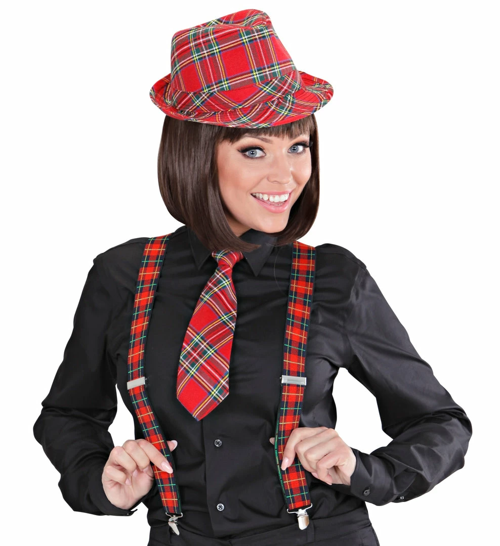 These Tartan braces are the perfect costume accessory for either a punk costume or a Scottish outfit. The Braces have elasticated straps and three metal clasps. Why not add a tam o’shanter hat or some punk items to complete the desired look.