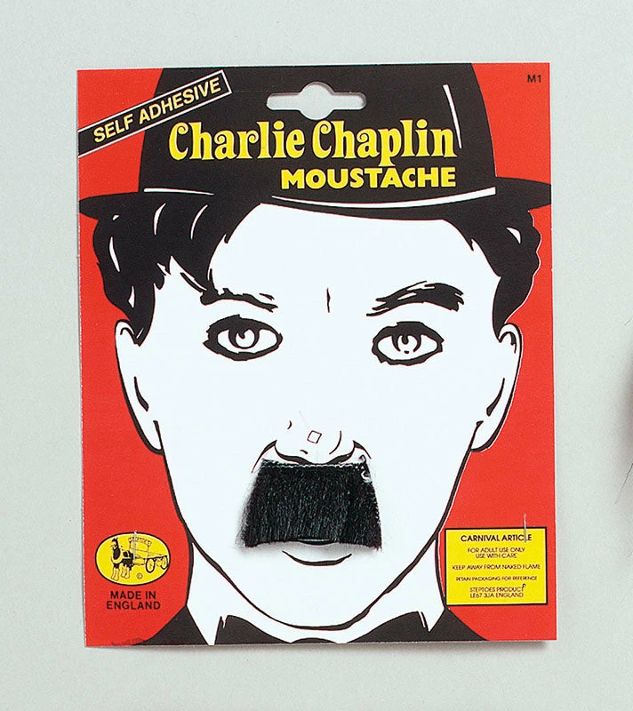Black Charlie Chaplin style moustache; Self adhesive backing – Just remove backing paper & press to stick. It couldn’t be easier.