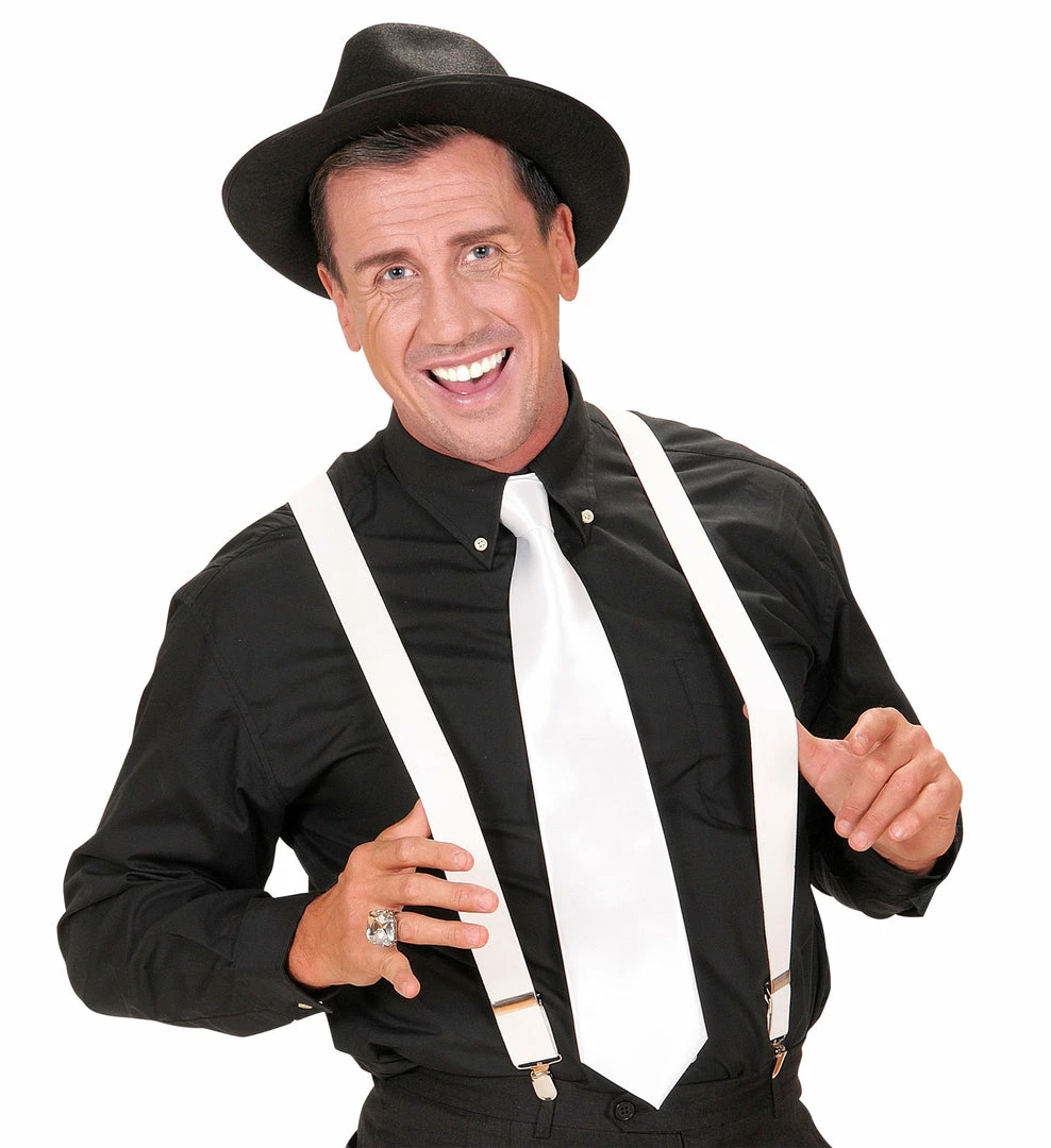 These versatile white braces can be used as a costume accessory for a multitude of characters such as 1920’s style gangster, mobster, nerd, cabaret . Also can be used as braces for nerd costume. These braces are adjustable braces for use with trousers or skirts. They have elasticated straps and three metal clasps and are extra long up to 115-120 cm.