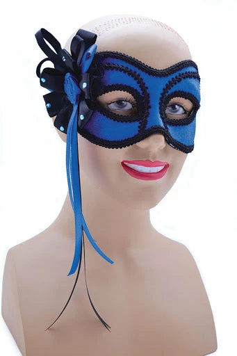 Blue Masquerade Mask with side Decoration on headband.