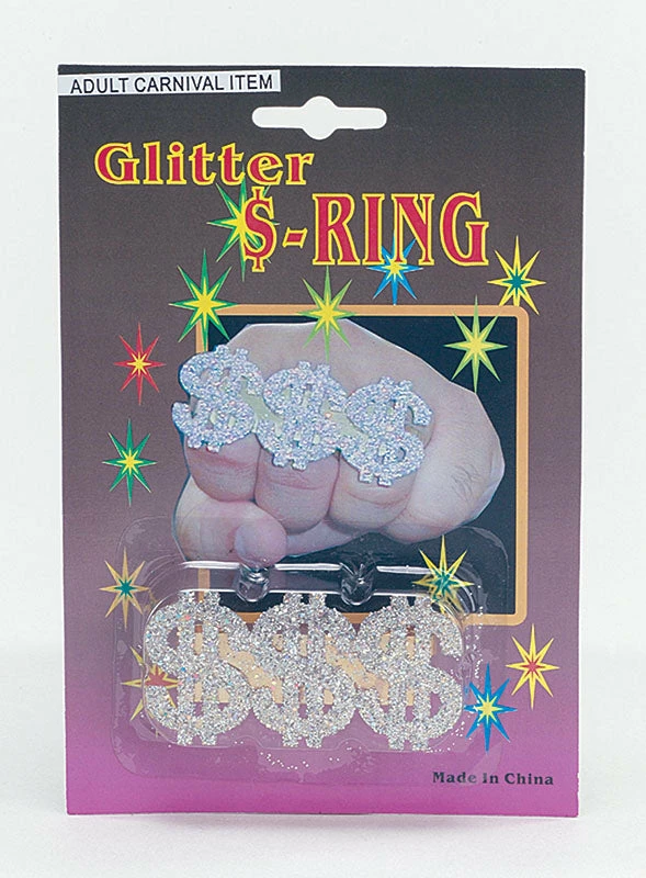Bling out your hand with this awesome 3 in 1 dollar rapper ring! Nothing will scream “rich!” more than wearing these dollar signs on your knuckles! Perfect accessory for rapper, pimp or Ali G fancy dress party.