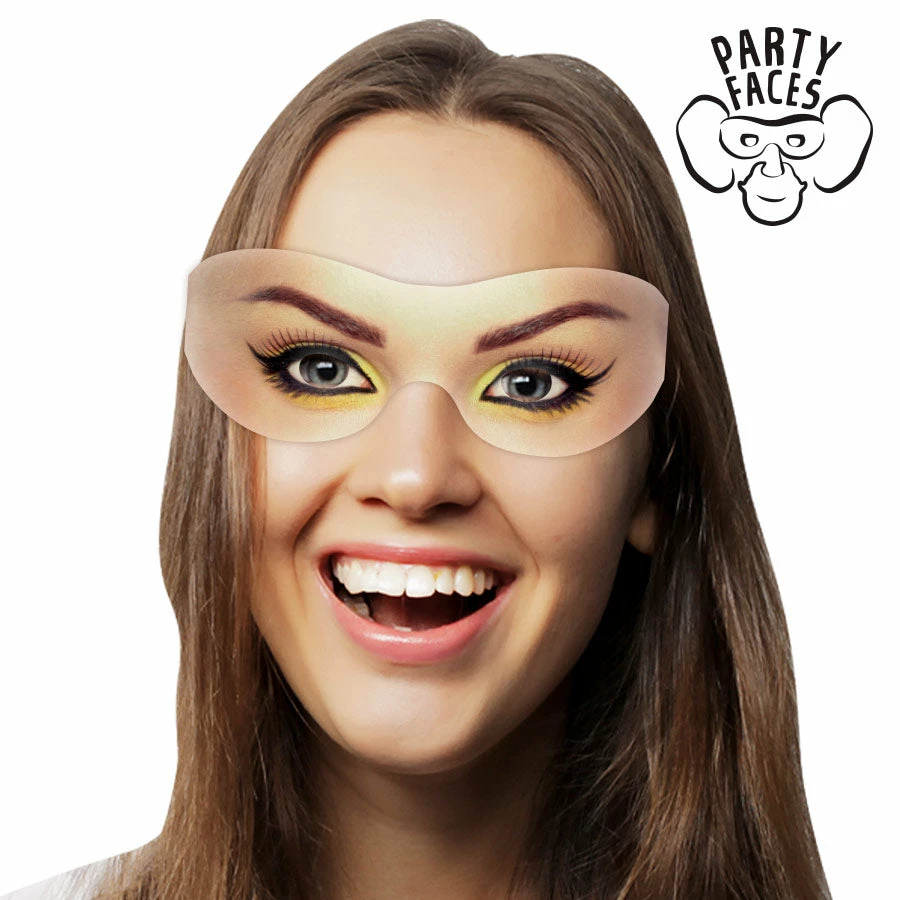Each themed pack contains 10 different printed card Goggle Eyes designs for your face, wear them like glasses and watch your friends double-take as you disguise your eyes with these funny designs.