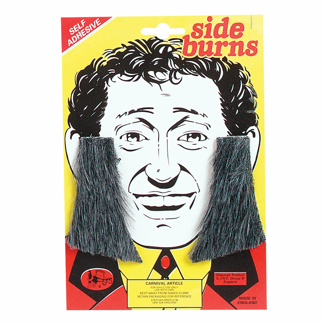 These grey sideburns are a great accessory for a variety of characters such as John McCririck the horse racing commentator. Quality pair of self-adhesive side burns.