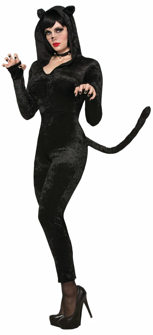 This black cat outfit zips up the front and comes with an attached hood with ears and tail.