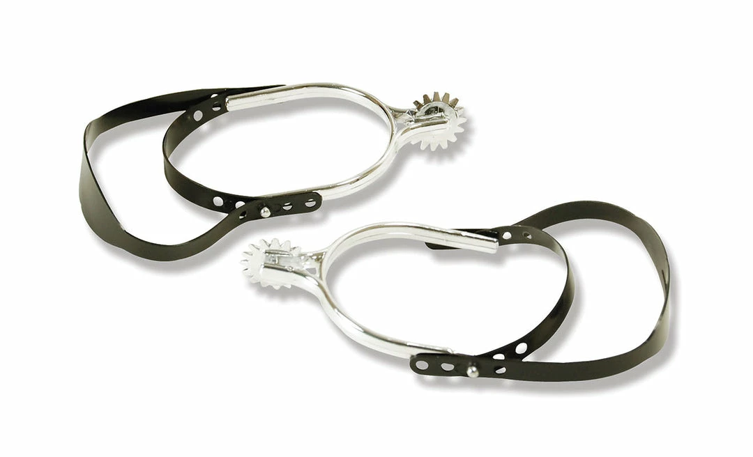 Silver Cowboy Spurs With Black Straps. Perfect for putting the finishing touches to a cowboy or cowgirl costume or western themed fancy dress party.
