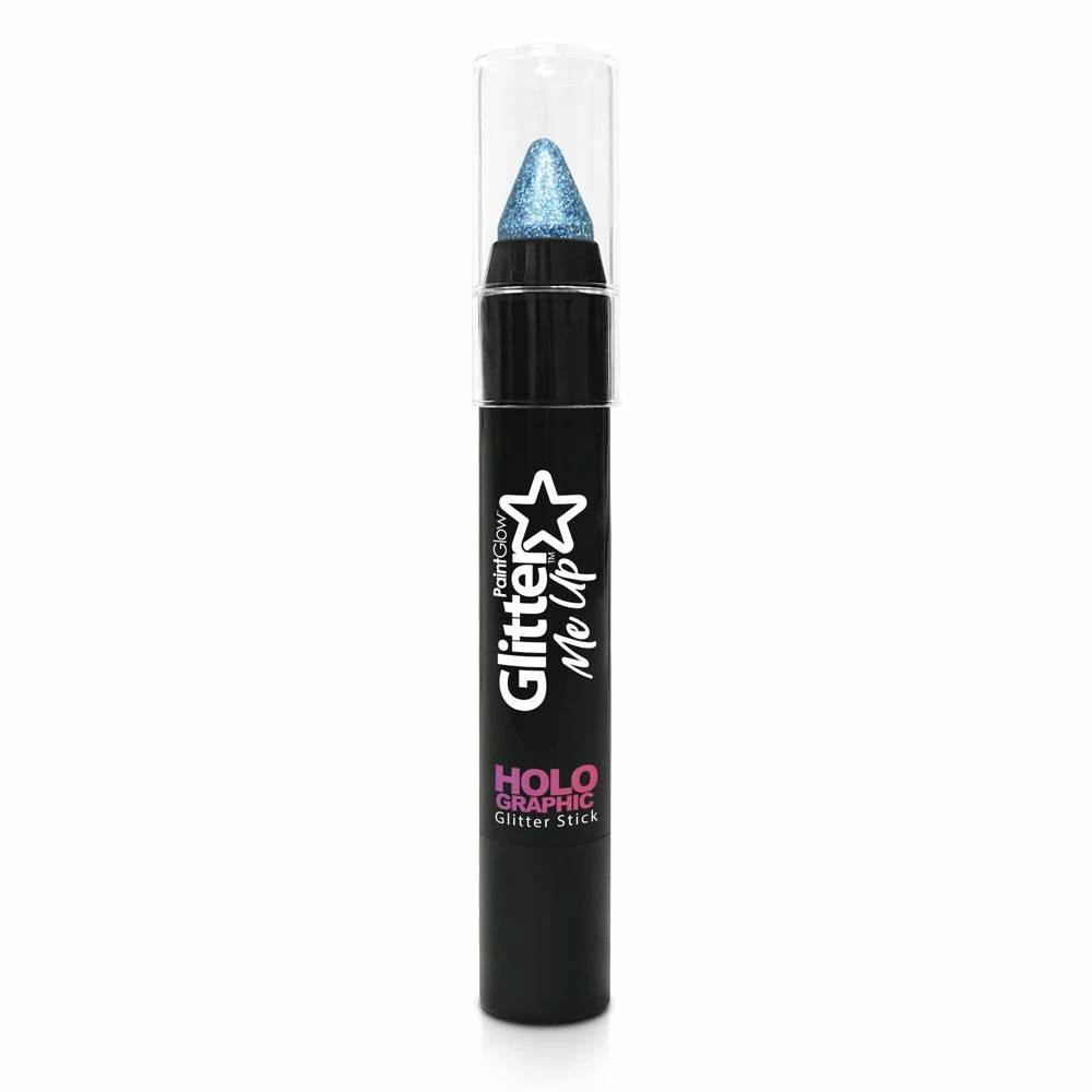 Get festival ready with our blue holographic glitter makeup sticks for a mess free application to the face and body.