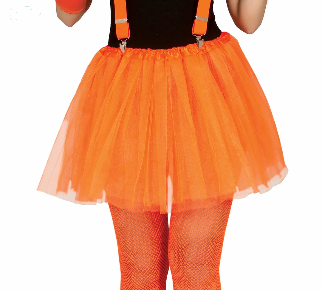 Neon Orange 80’s tutu petticoat with elasticated waistband and tulle net. Perfect finishing touch for 1980’s themed nights, many short skirts, creating a fuller effect and providing a tantalising hemline.