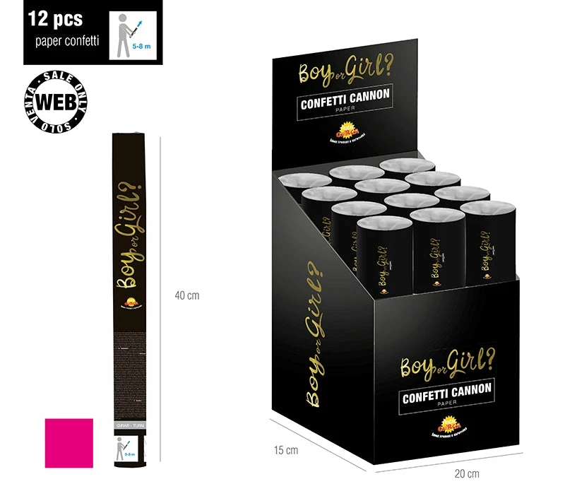 Start the gender reveal or baby shower celebration with a bang with our Pink and Gold It’s a Boy or Girl Confetti Cannon . Just twist the bottom and with a loud bang, watch as a cascade of confetti shower your guests or loved one in joy.