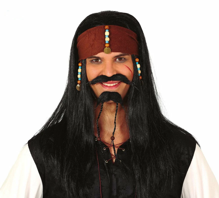 Add the finishing touch to your costume with our Black Pirate wig with plaits and head scarf.