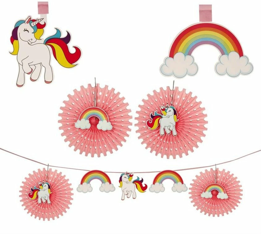 If you are having a Unicorn themed party, then this 14 piece garland set will make the celebration complete! It features unicorns and rainbows to create a warm and happy atmosphere!