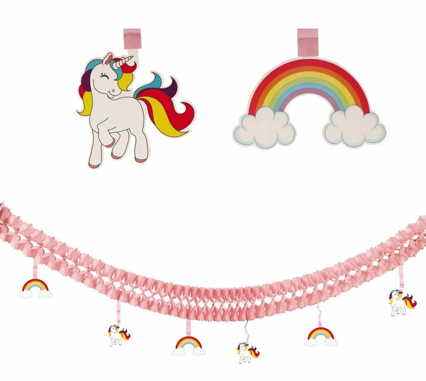 If you are having a Unicorn themed party, then this 6 piece garland set will make the celebration complete! It features unicorns and rainbows to create a warm and happy atmosphere!