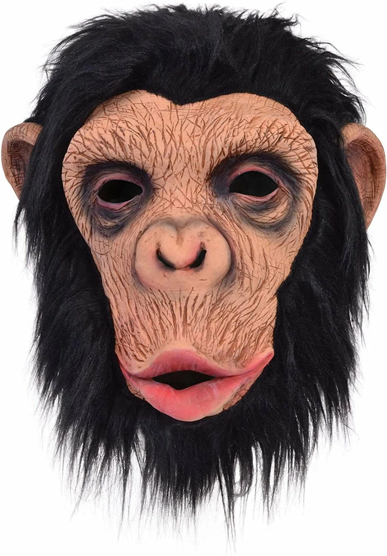 Revert to a previous life with this Cheeky Chimp Mask. Quality overhead Chimp Mask features oversized chimp ears and a detailed latex chimp face framed by brown faux fur. One size Chimp Mask fits most teen and adult homo sapiens.