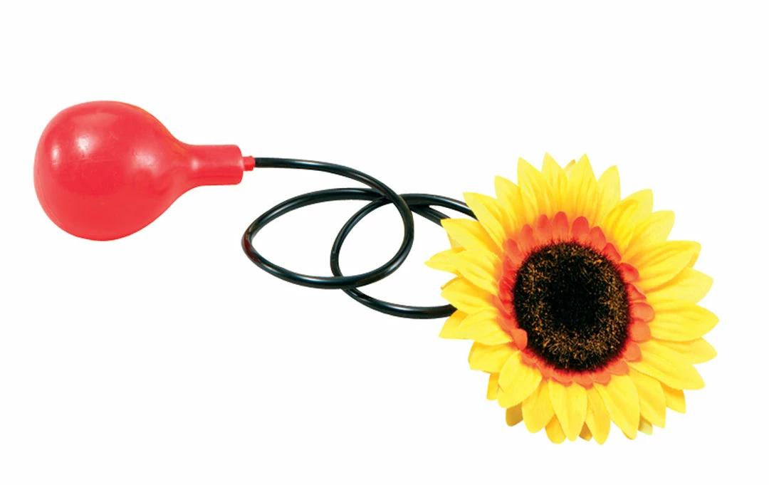What diabolical schemes lie in such an innocent flower? This Clown Squirt Flower features a yellow synthetic fabric sunflower that squirts a stream of water when you squeeze the attached hand-held rubber pump. Unsuspecting friends get hydrated when they lean in to sniff the Squirt Flower. Use it to finish off your clown costume, or wear it to work if you dare!