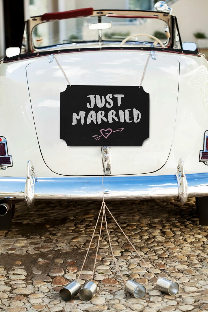 Perfect for vintage or rustic weddings and other party events Hanging chalkboard sign, black, with a free text field, made of thick paper with jute twine. The set includes 2 chalks: white and red. Size 45×30 centimeters.