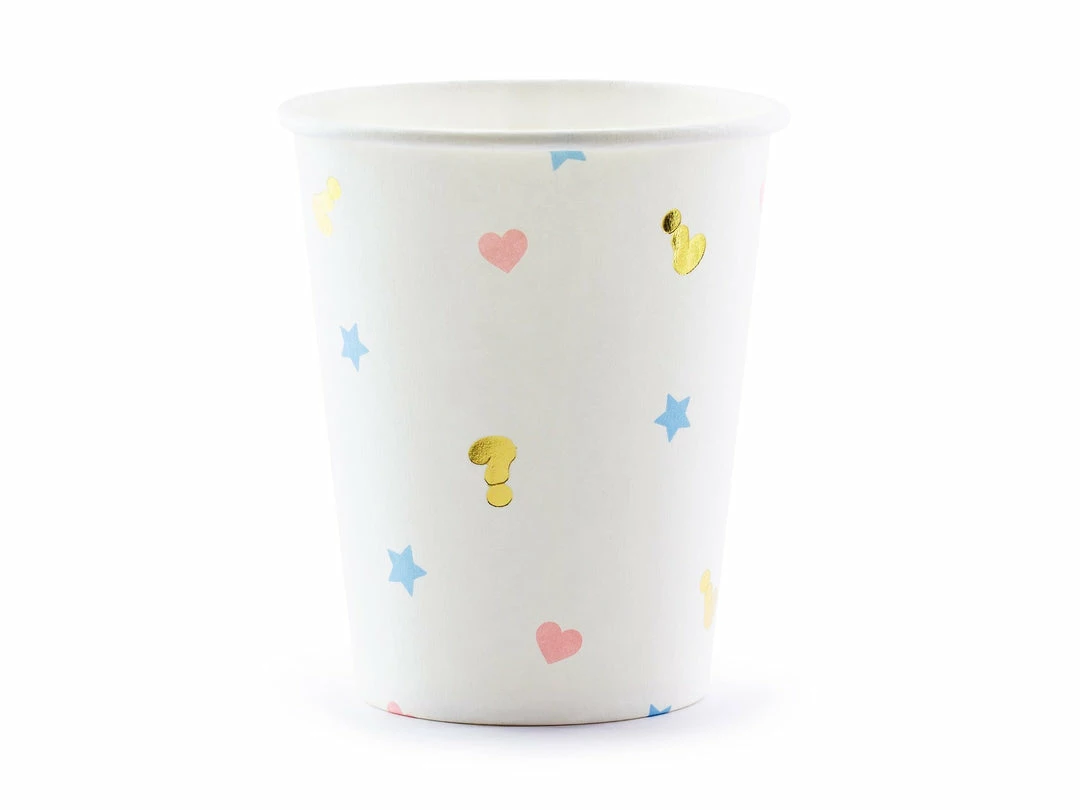 These Paper cups tableware with gold metallic inscription Boy or Girl in a mix of colours are perfect for your next Gender reveal party.