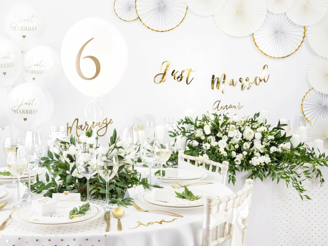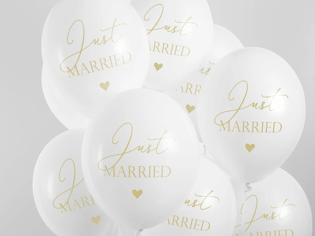 Balloon, diameter approx. 30cm pastel white with Just Married in gold print .