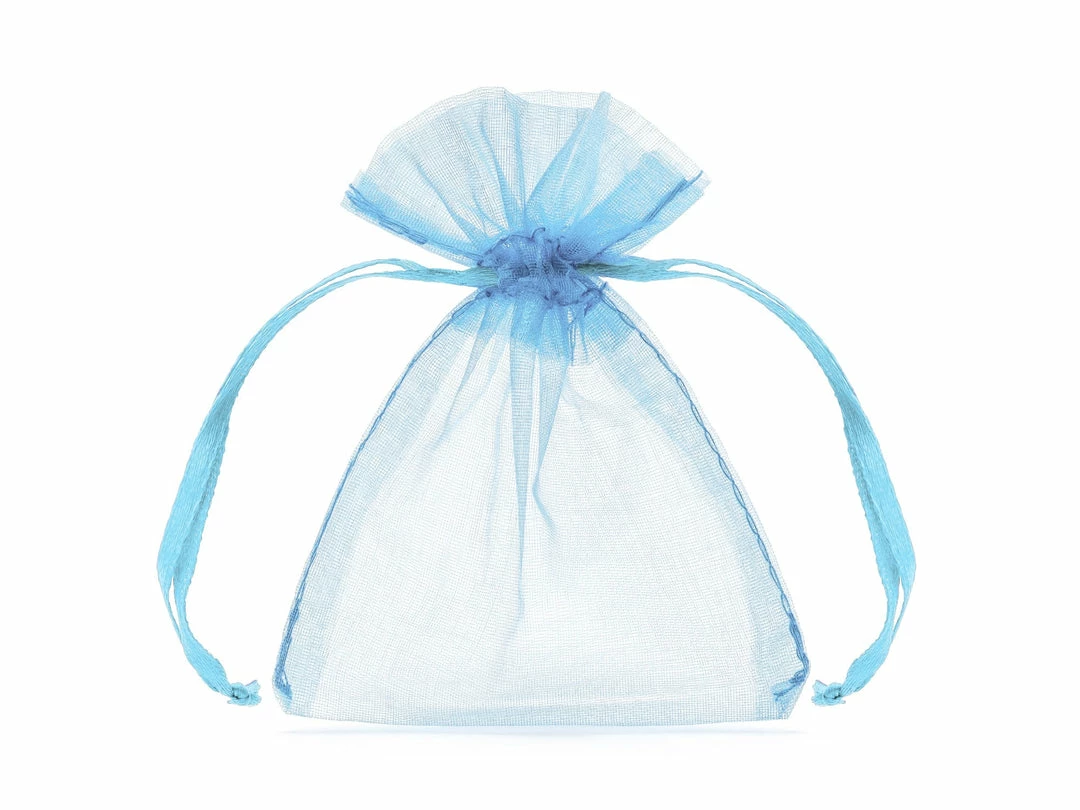 Our sky blue organza bags are perfect for holding such things to hold wedding favours and gifts. Also small soaps, jewelry, bath salts, potpourri, and much more.