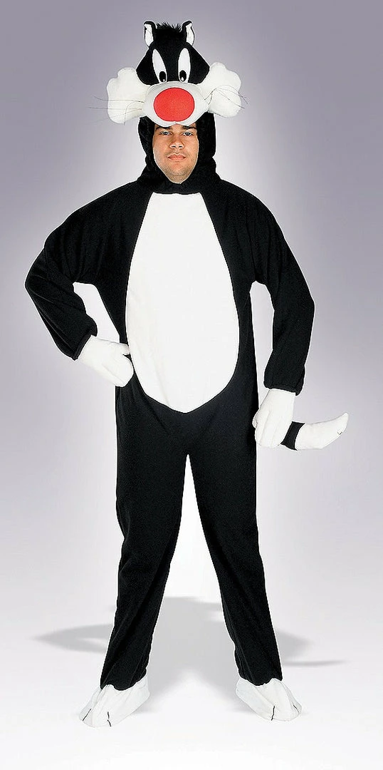 Sylvester Costume Contains: – A Sylvester black and white jumpsuit with an attached plush Sylvester character headpiece. Size Available: Standard. – Chest Size Up To 44″. – Waist Size Up To 36″. The Sylvester Costume is an Officially Licensed Looney Tunes Costume.