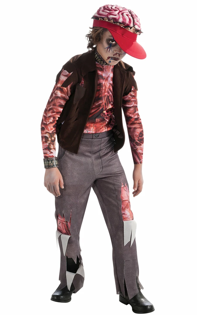 The Zomboy Zombie – Boys Halloween Costume, fancy dress Costume includes: a scary yet funky Zomboy Halloween costume.