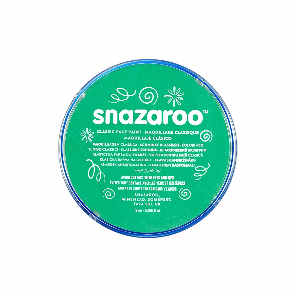Get into bright colours with this classic Bright Green Snazaroo 18ml pot of water based face and body paint.