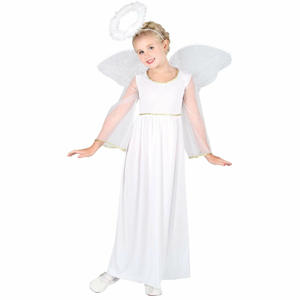Angel Long Sleeves Nativity Costume includes White Dress Wings Halo