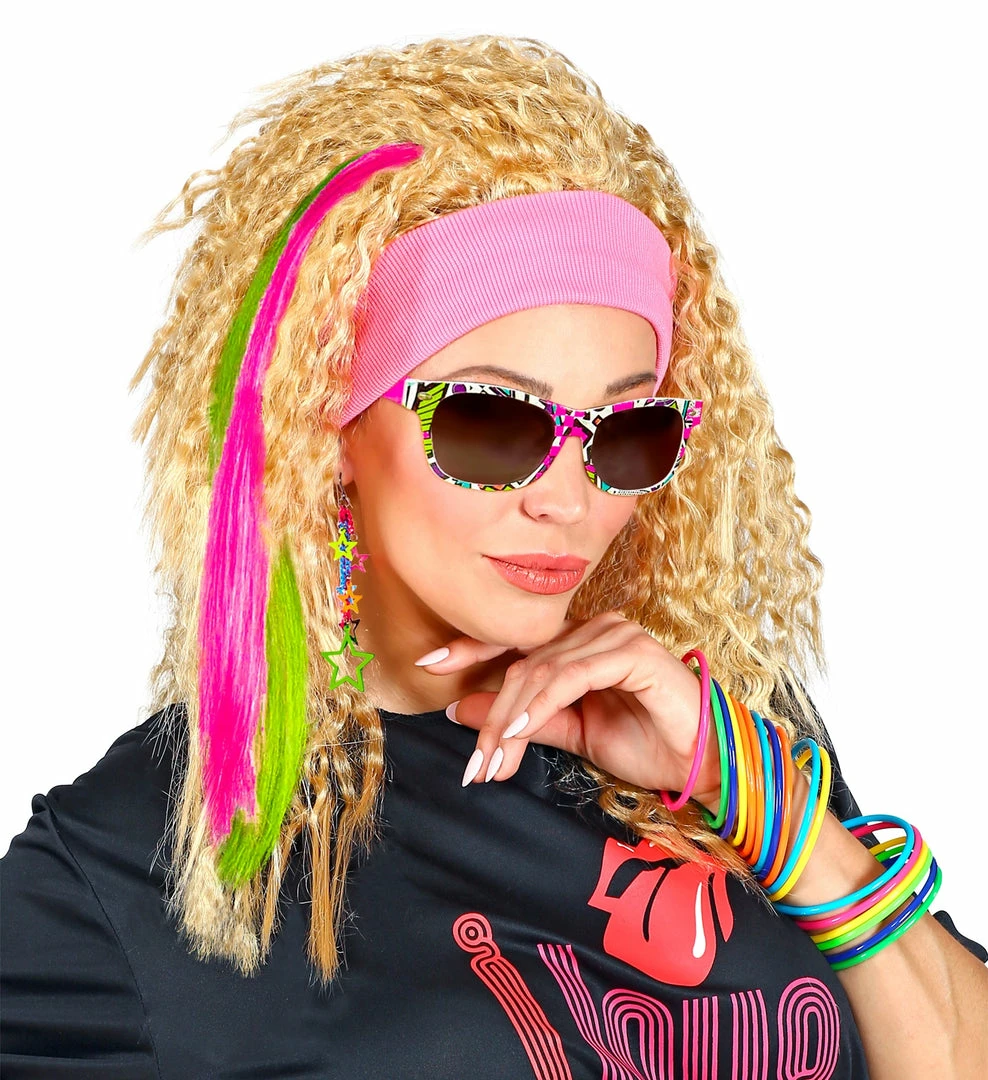 Our 80’s Party Girl neon costume accessory kit is perfect for reliving the 1980’s and adding the finishing touches to iconic outfits such as singers Madonna or Cyndi Lauper.