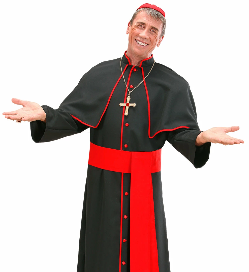 Add the finishing touches to your cardinal, pope, bishop or religious costume with this fantastic Cardinal Cross Necklace and Ring Set. It features a jewelled cross with matching pair of ruby rings.