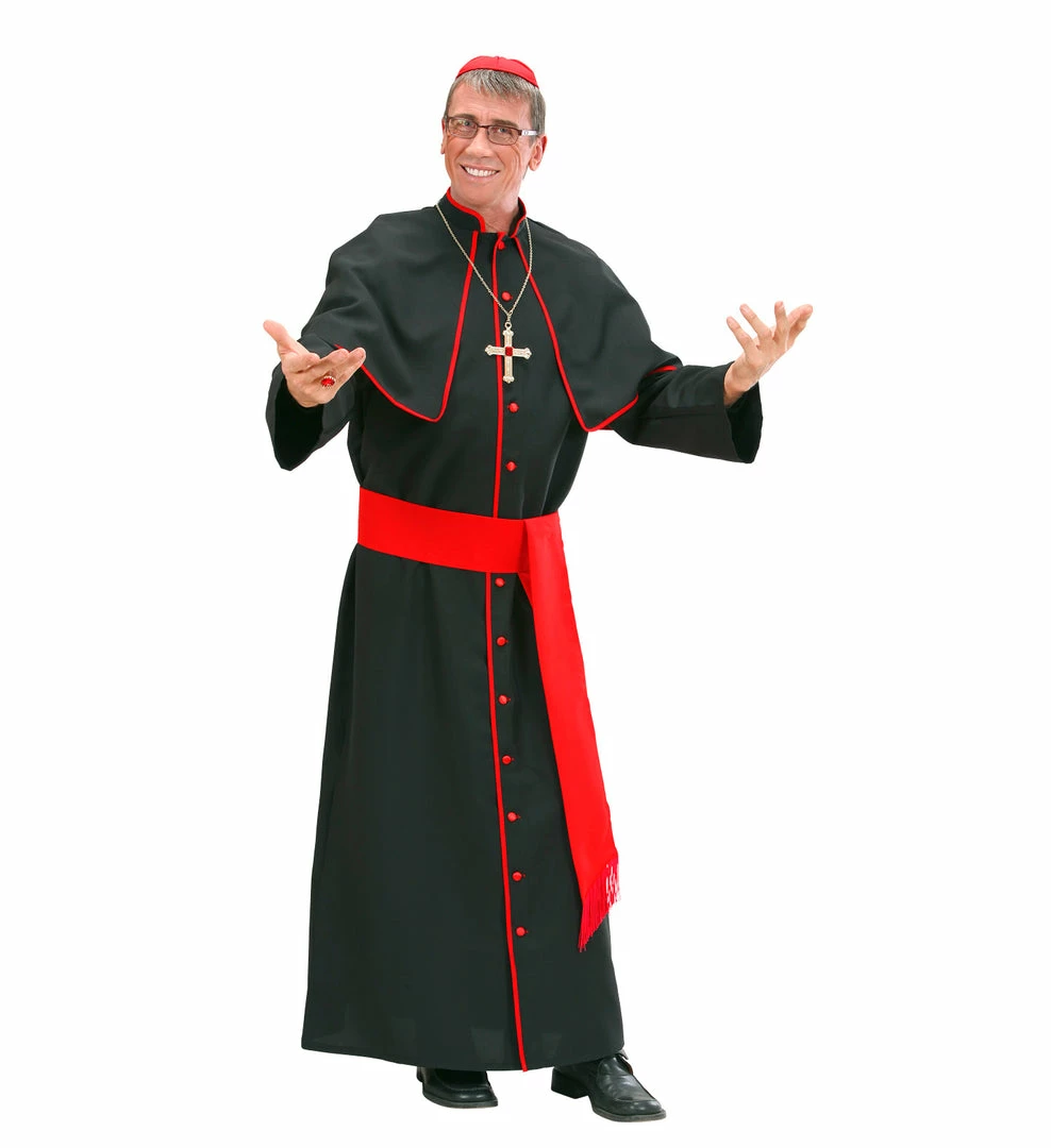 Hang out with the popes, bishops, archbishops and priests as a member of the clergy with this fantastic men’s black Cardinal fancy dress costume. Perfect for Fr Ted themed parties and events especially bishop Len Brennan.